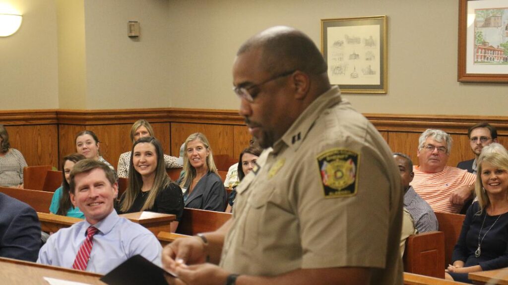 On Monday, during the Chambers County Commission meeting in LaFayette, Chambers County Sheriff Jeff Nelson recognized Captain Justin Burns for 10 years of service with the Sheriff’s Office.