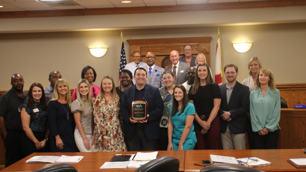 Commissioner Debra Riley addressed the room, announcing that the leadership had recently won the award for the Association of County Commissions of Alabama for Efficiency and Innovation in County Government in the Rural County Category.