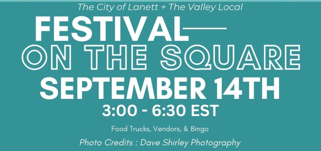 The City of Lanett and Valley Local present Festival On The Square on Sunday, September 14th, from 3:00-6:30 EST.