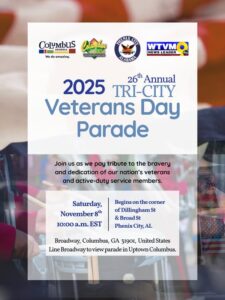 The Columbus, GA Parks and Recreation Department will host the 26th annual Tri-City Veterans Day Parade to honor our United States veterans and active-duty service members.