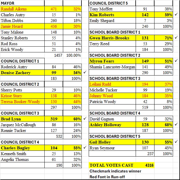 The Run-Off election for mayor, district 2, and school board district 3 is set for Tuesday, September 23rd, 2025.