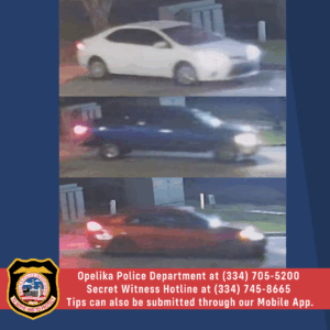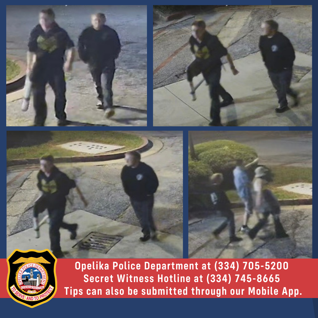 If you have any information or security camera footage regarding this incident or the identity of the suspects, please contact the Opelika Police Department at (334) 705-5200 or the Secret Witness Hotline at (334) 745-8665. Tips can be submitted through our Opelika Police Mobile App. You may wish to remain anonymous.